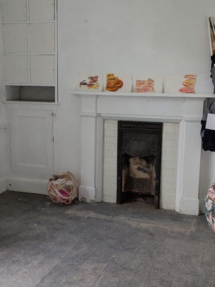 The materials to be used in this piece include Charcoal I made in Whiffy bar, Hilbre Island and mud collected there and further coloured by grinding down the detritus of the various sandstone strata of the island.